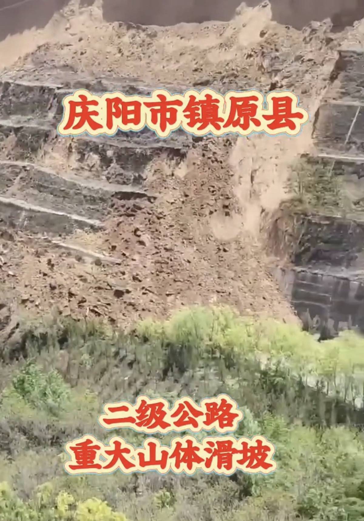 4月23日,有网友在社交平台发布视频称,甘肃省庆阳市镇原县境内发生山体垮塌掩埋公路致交通中断。视频显示,一公路旁的山体发生大面积垮塌,垮塌的土方将路面掩埋,导致双向交通中断。另有视频显示,一辆别克小轿车被滑坡的黄土推下路面四脚朝天,底盘及一侧被黄土掩盖,车内被困人员可以和外界交流,有路人和消防人员正在施救。